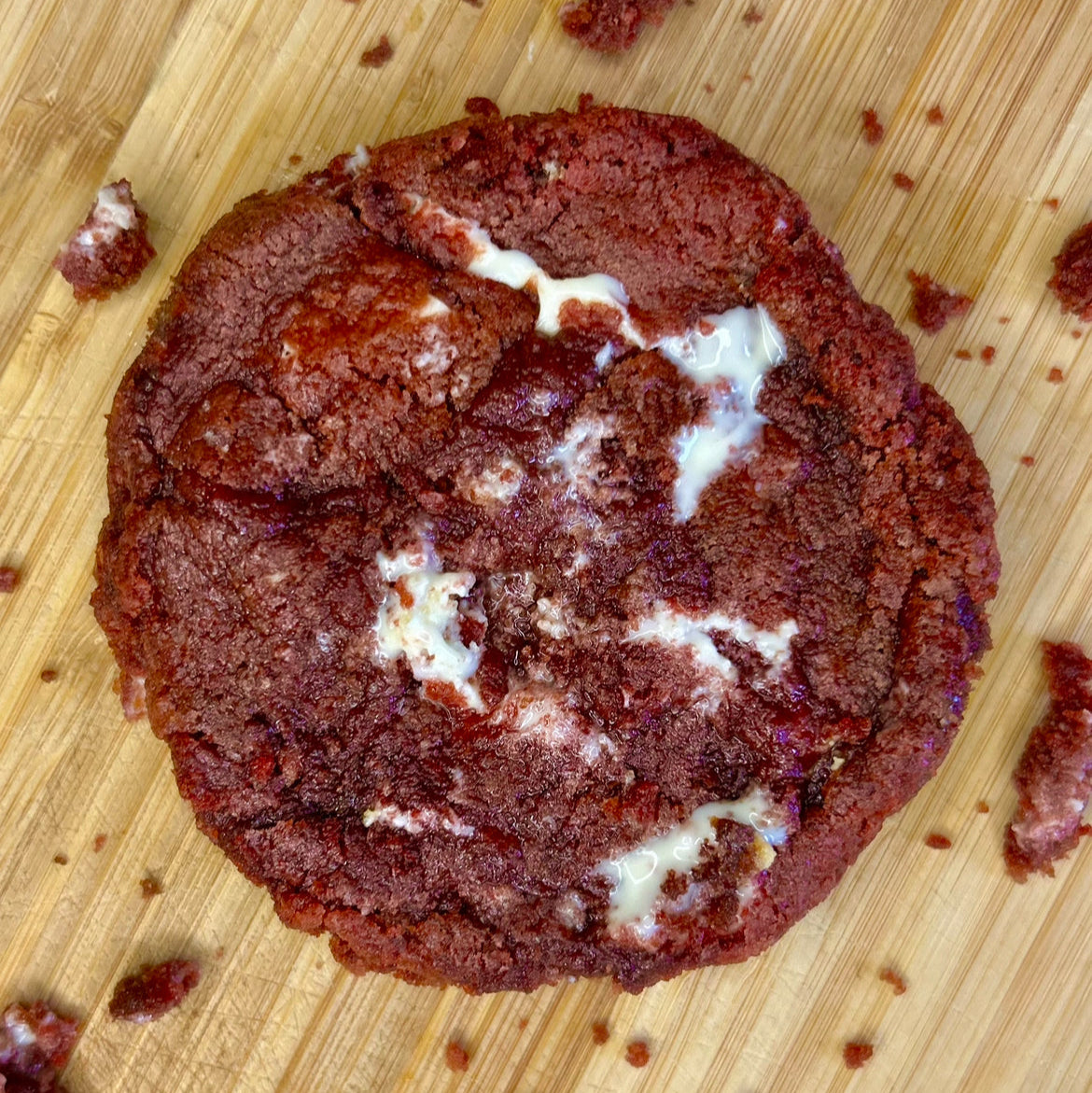Un cookie aux couleurs de l'amour, l'association parfaite d'un cookie croustillant à l'exterieur et ultra moelleux à l'intérieur aux pépites de chocolat blanc fondantes.
